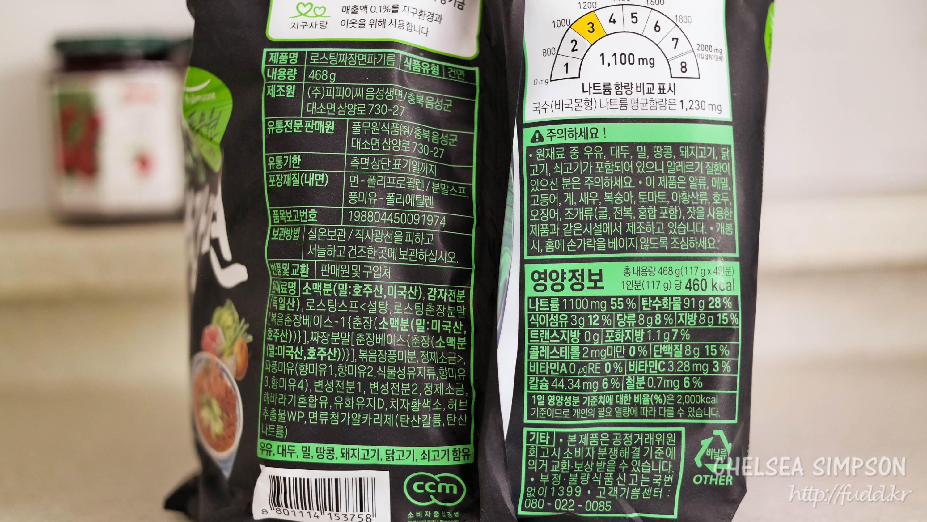 열량이 460kcal로 보통 짜장라면에 비해 약간 적은 편인데 중량도 117g으로 가볍기 때문인 이유도 있는 것 같다.