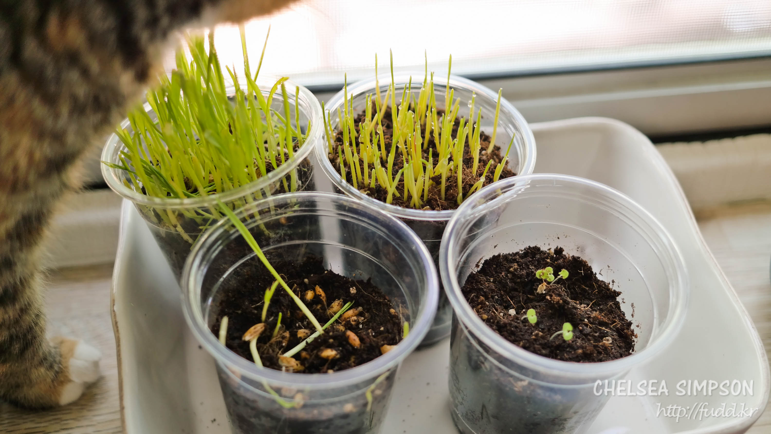 캣그라스 심은 지 이틀째.