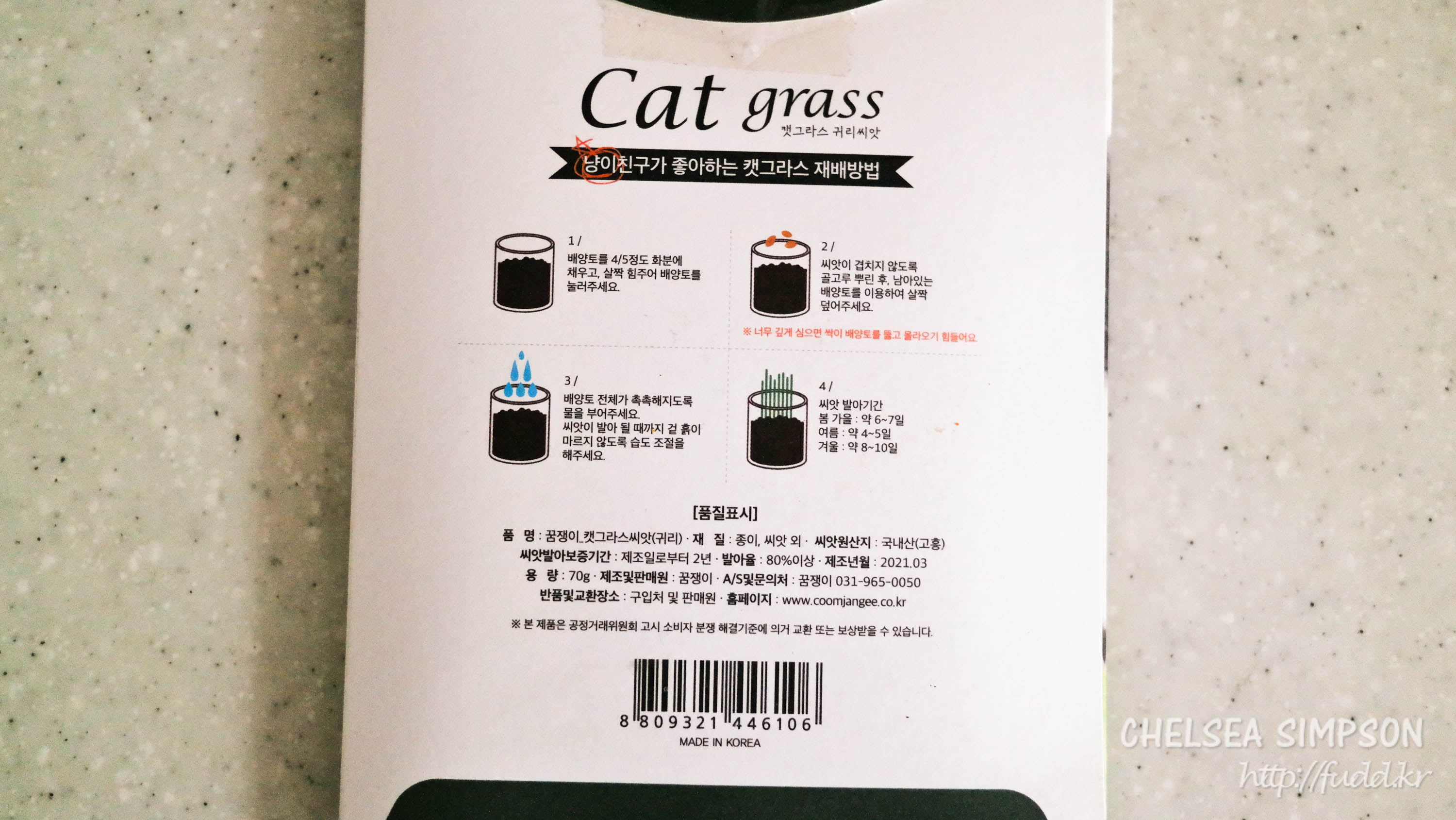 후추가 캣그라스 사각사각 씹는 걸 아주 좋아라 해서 캣그라스 씨앗을 주문했다.