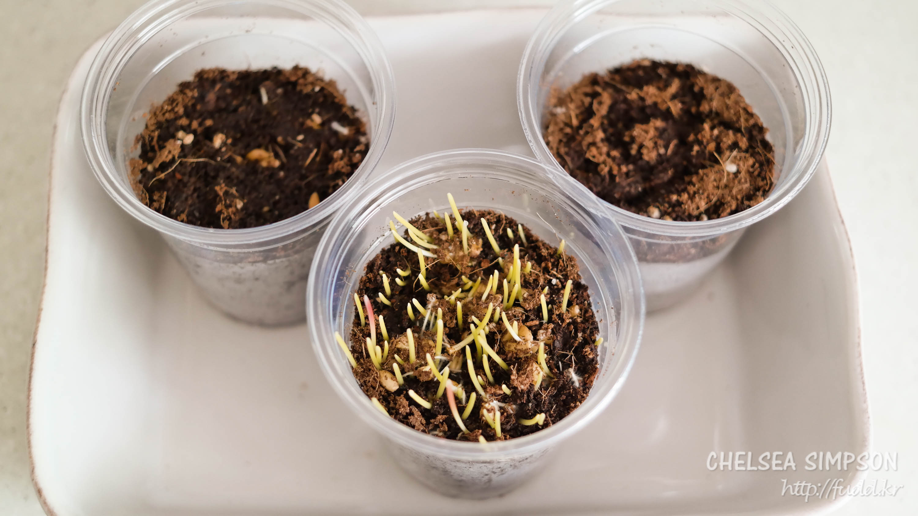 나는 이틀 정도 불려서 심었는데 봄, 가을 기준으로 싹이 눈에 보이게 올라오는 데까지는 하루 걸렸다.