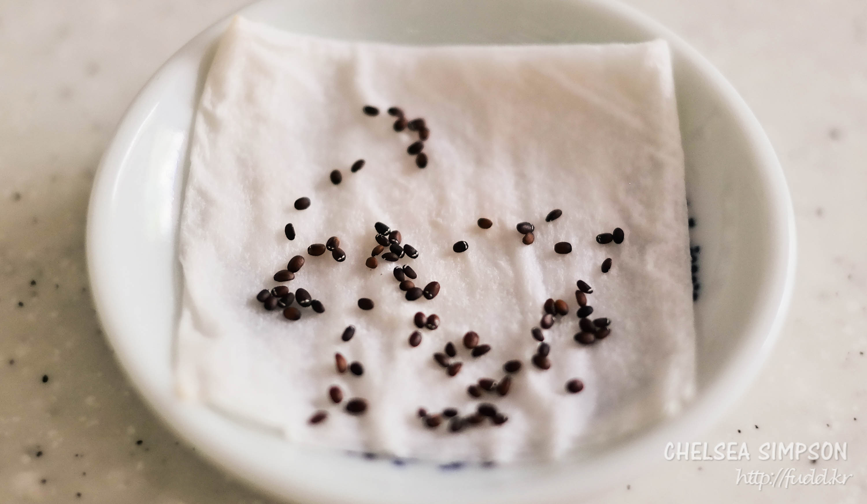 각각 작은 종지에 담아서 이틀 정도 불렸는데 씨앗 종류에 따라 크기 차이가 많이 난다.
