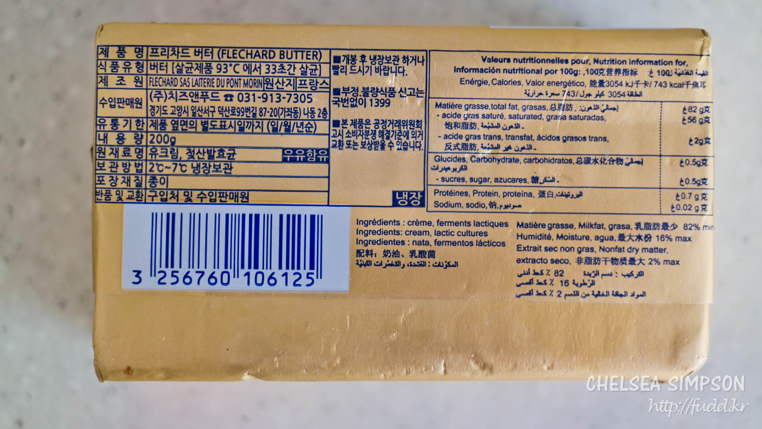 원산지는 프랑스, 원재료는 유크림과 젖산발효균만 들어있다.