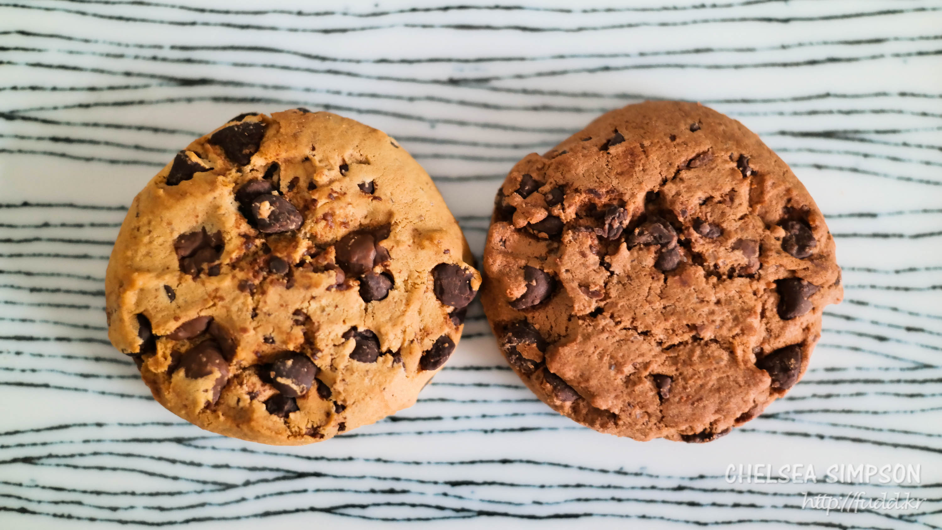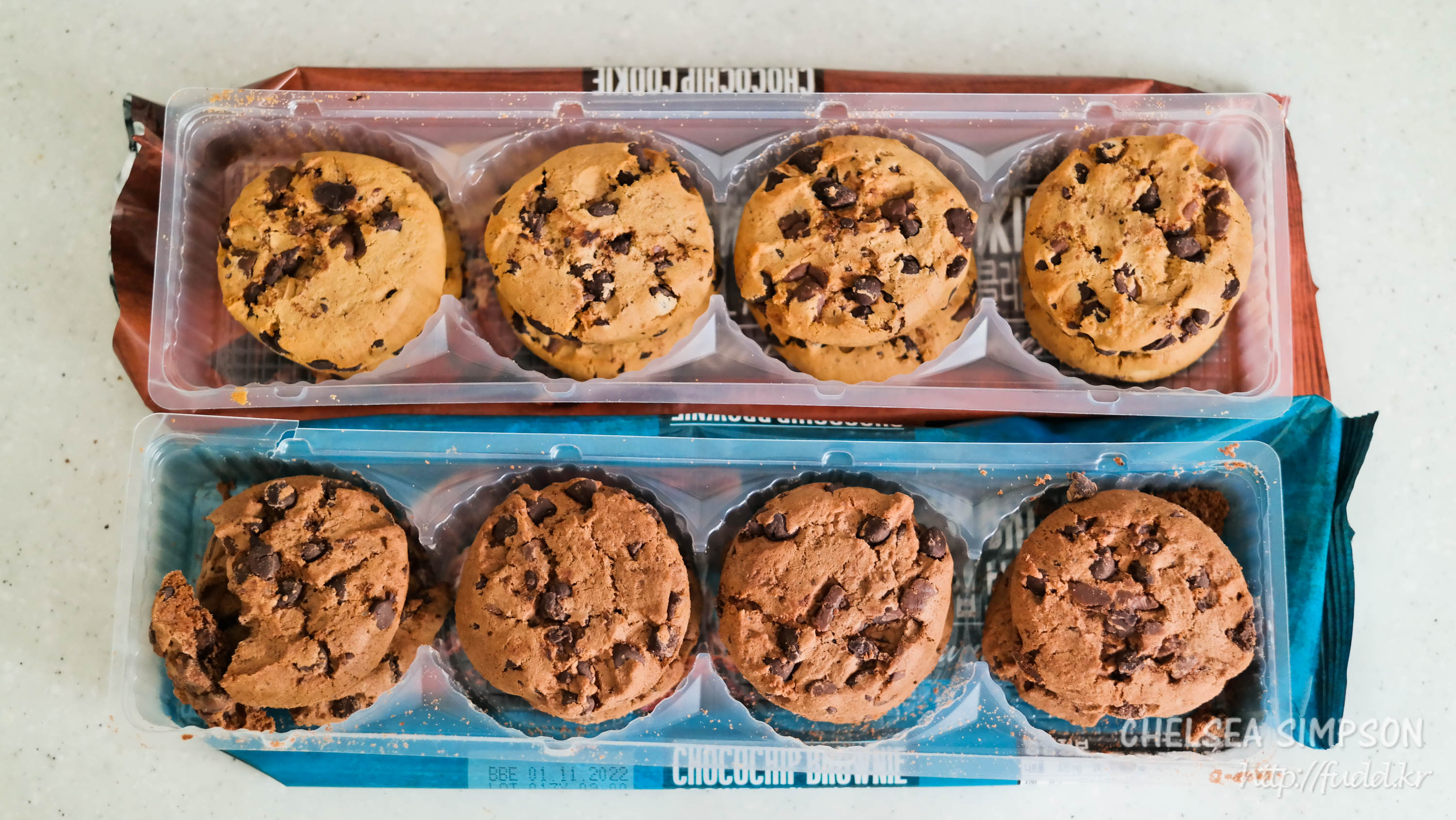 왼쪽은 초코칩 쿠키 클래식, 오른쪽은 초코칩 쿠키 브라우니.