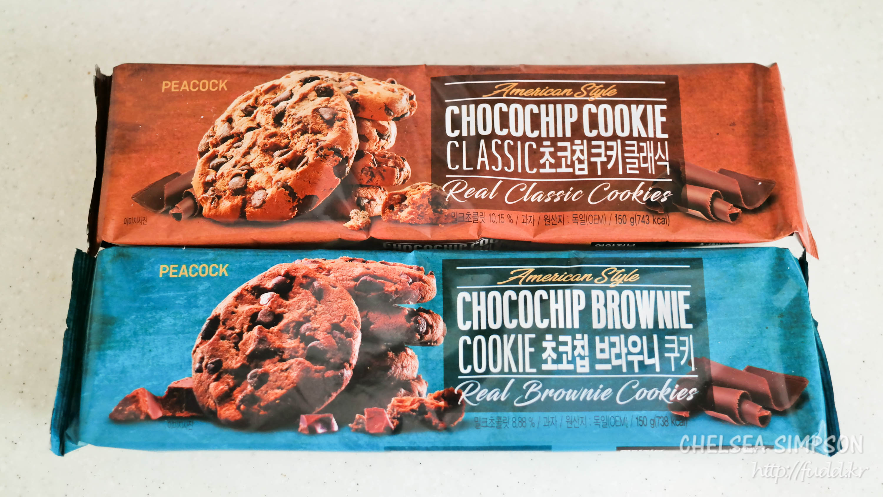 피코크 브랜드를 달고 판매하는 두 가지 초코칩 쿠키.