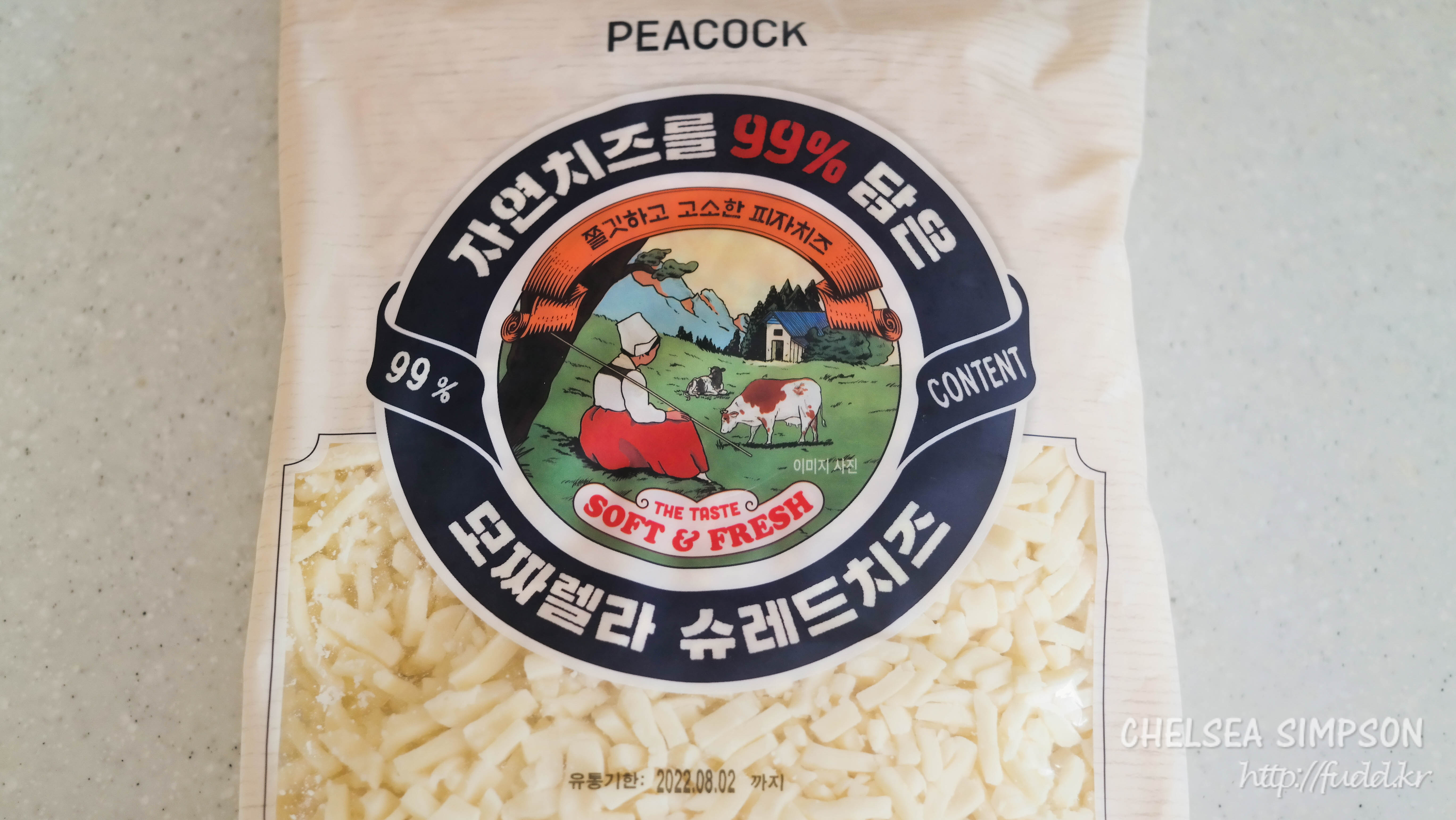 이마트 자체 브랜드인 피코크의 슈레드 치즈.