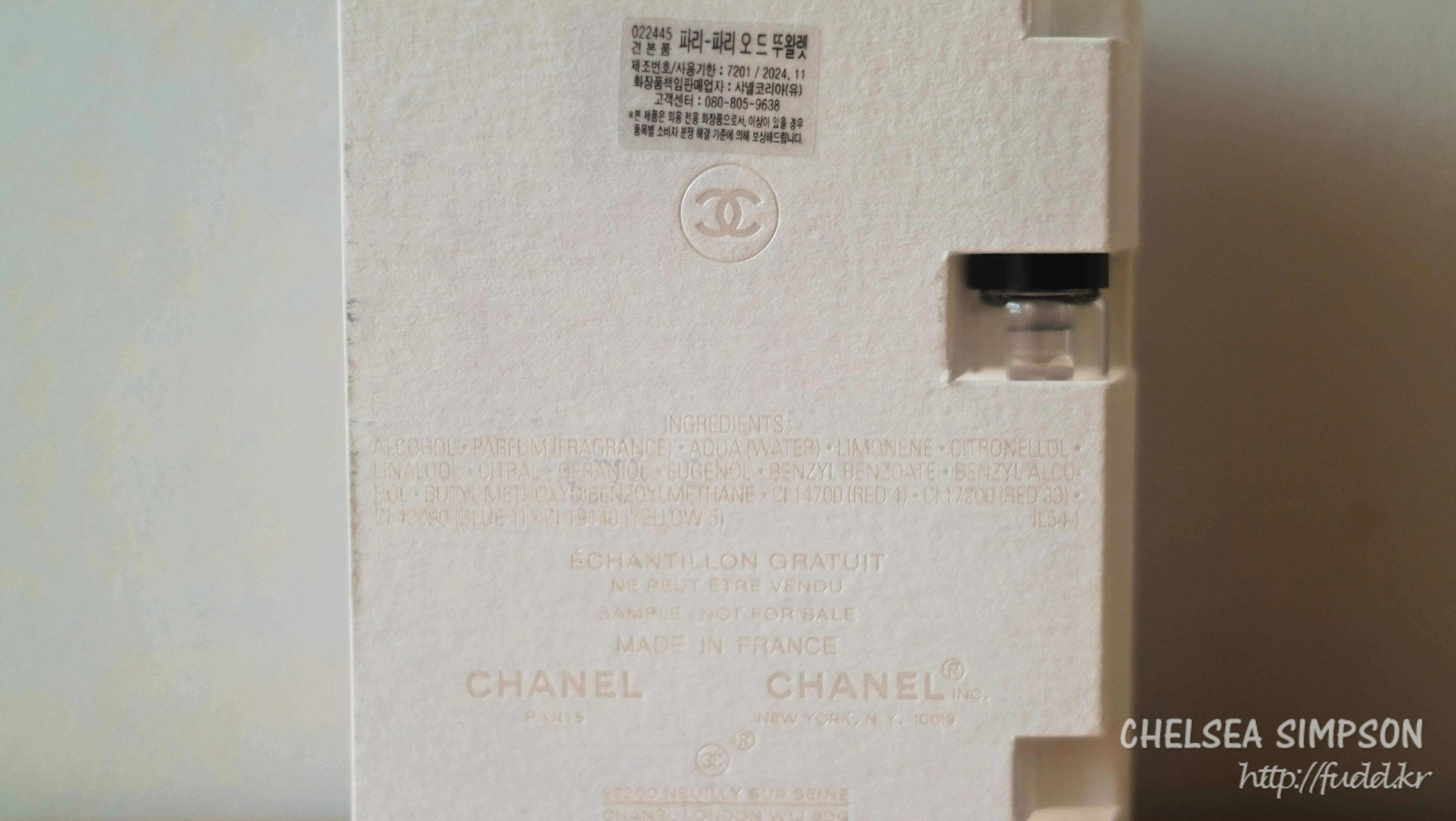 [샤넬]신제품 향수 레 조 드 샤넬 파리-파리 오 드 뚜왈렛 샘플 1.5ml 후기, 잔향 좋은 여름 향수 추천
