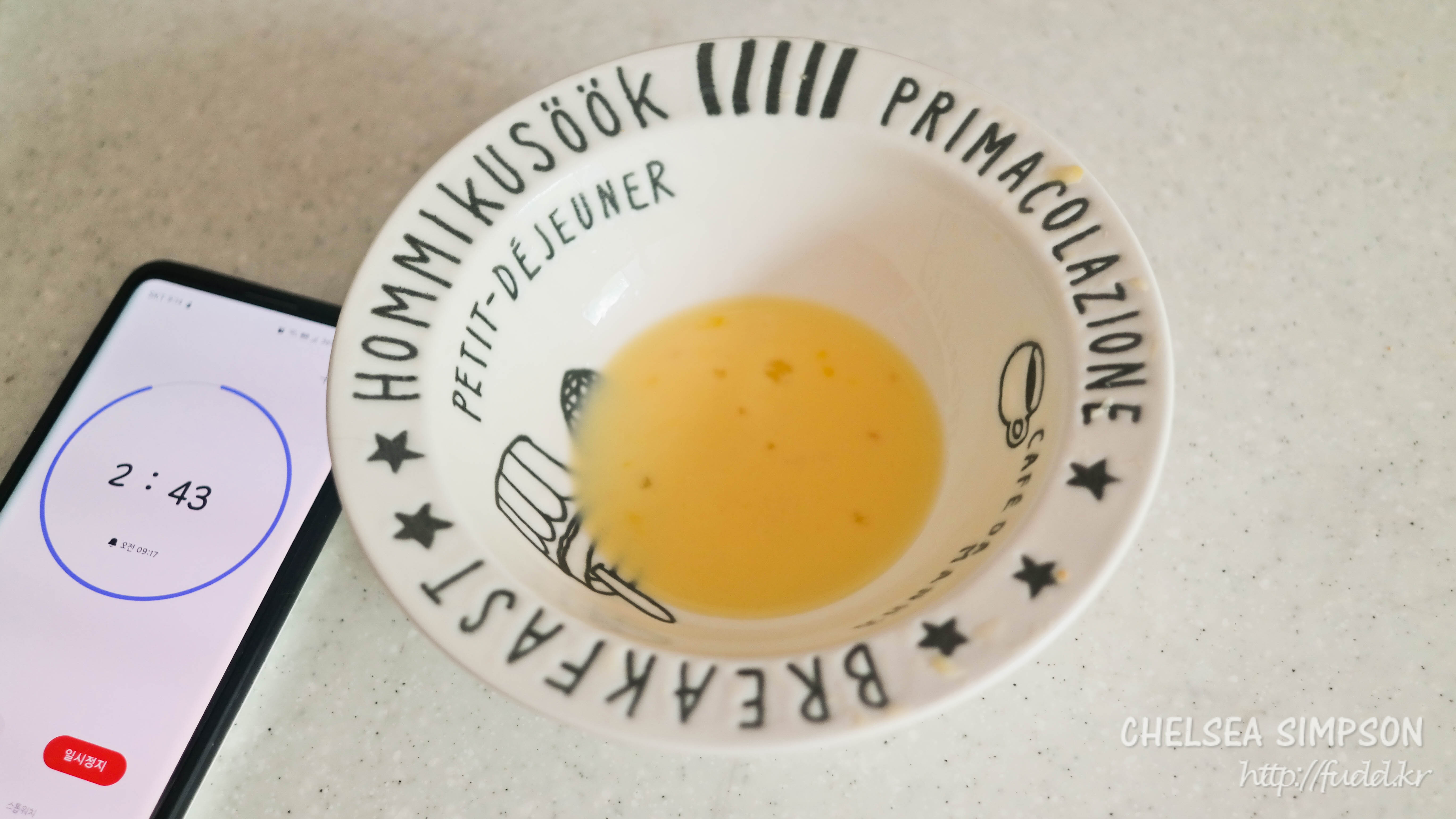 나는 급하게 빵을 적셨다 꺼내는 바람에 이 정도의 달걀물이 남았다.