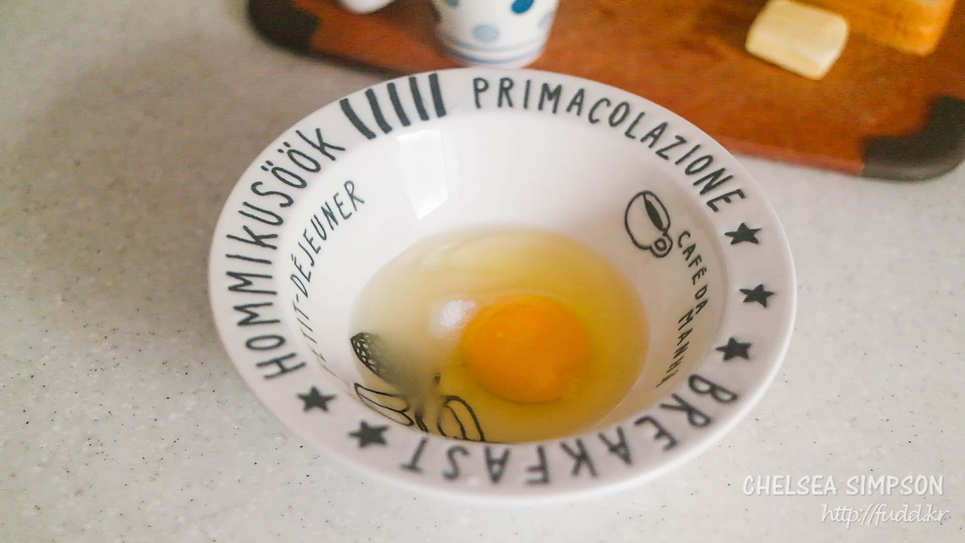 ⑤ Preheat a skillet over medium-low. Melt the butter and place the egg-coated bread.