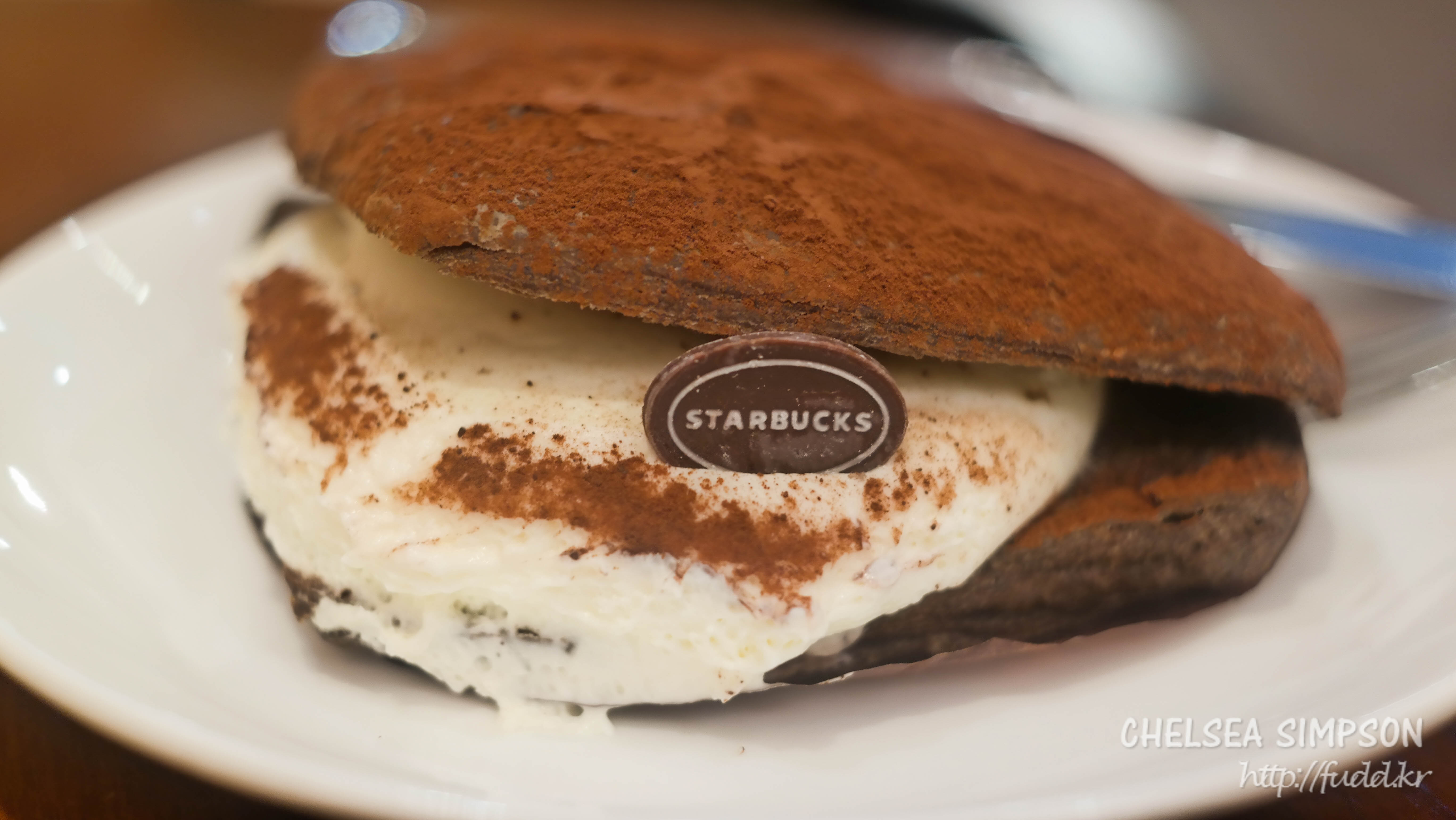 부드럽고 달콤한 마스카포네 우유크림을 가득 품은 초콜릿 데니쉬에 커피 시럽, 코코아 파우더를 더했다고 한다.
