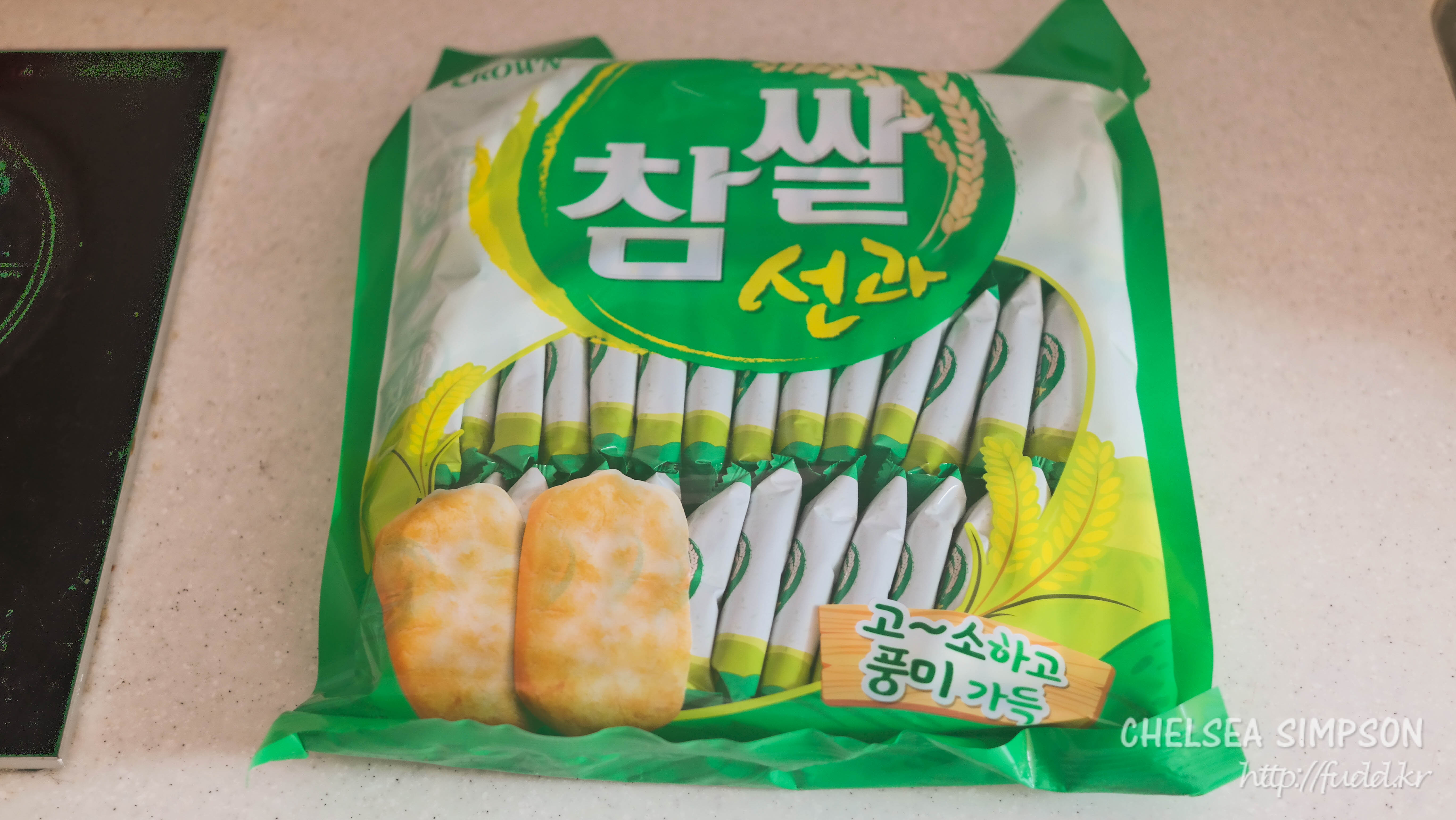 포장 때문에 일명 초록색 쌀과자.