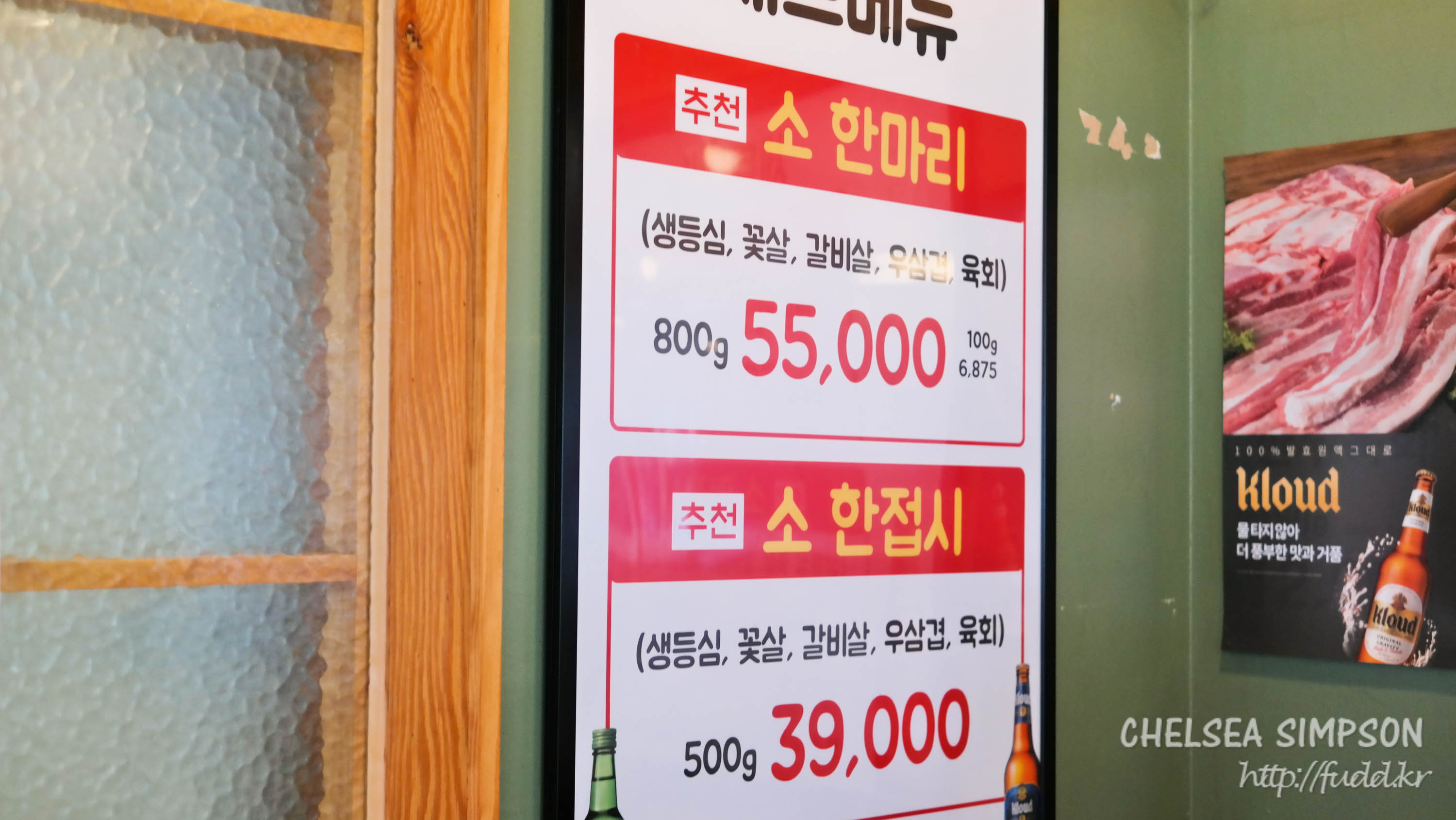 참고로 돼지고기 단품 중 국내산 삼겹살 가격은 1인분 13,000원, 칠레산 항정살은 15,000원이다(1인분 180g).