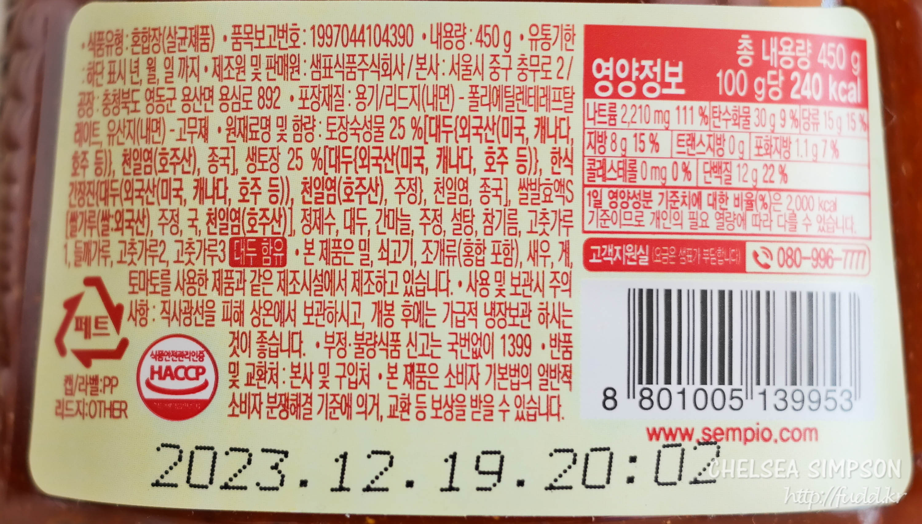 샘표 고기맛 살리는 매콤 쌈토장(450g, 마트 가격 5,680원)
