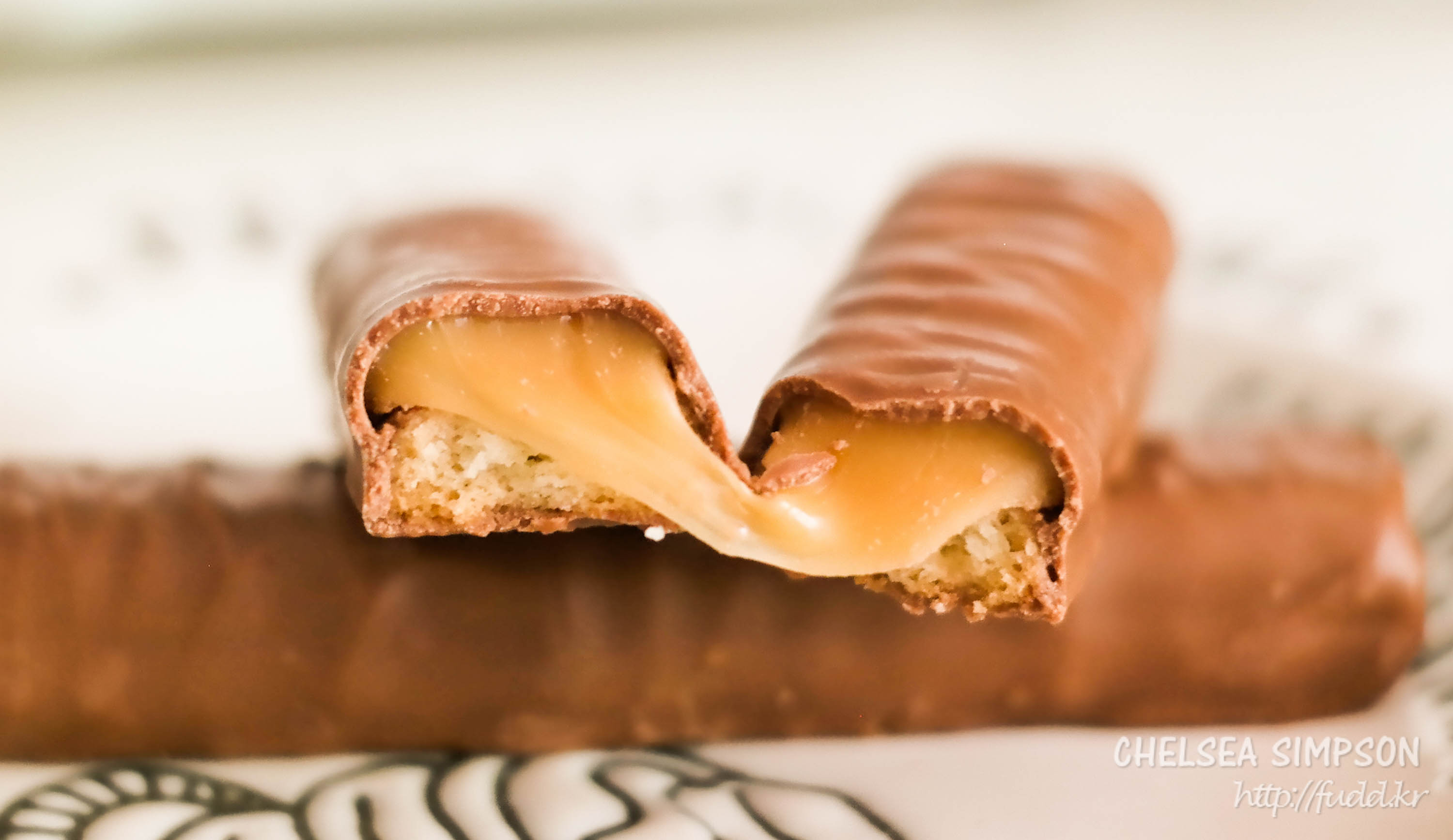 초콜릿 코팅 속에 진득한 캐러멜과 쿠키가 들어있다.
