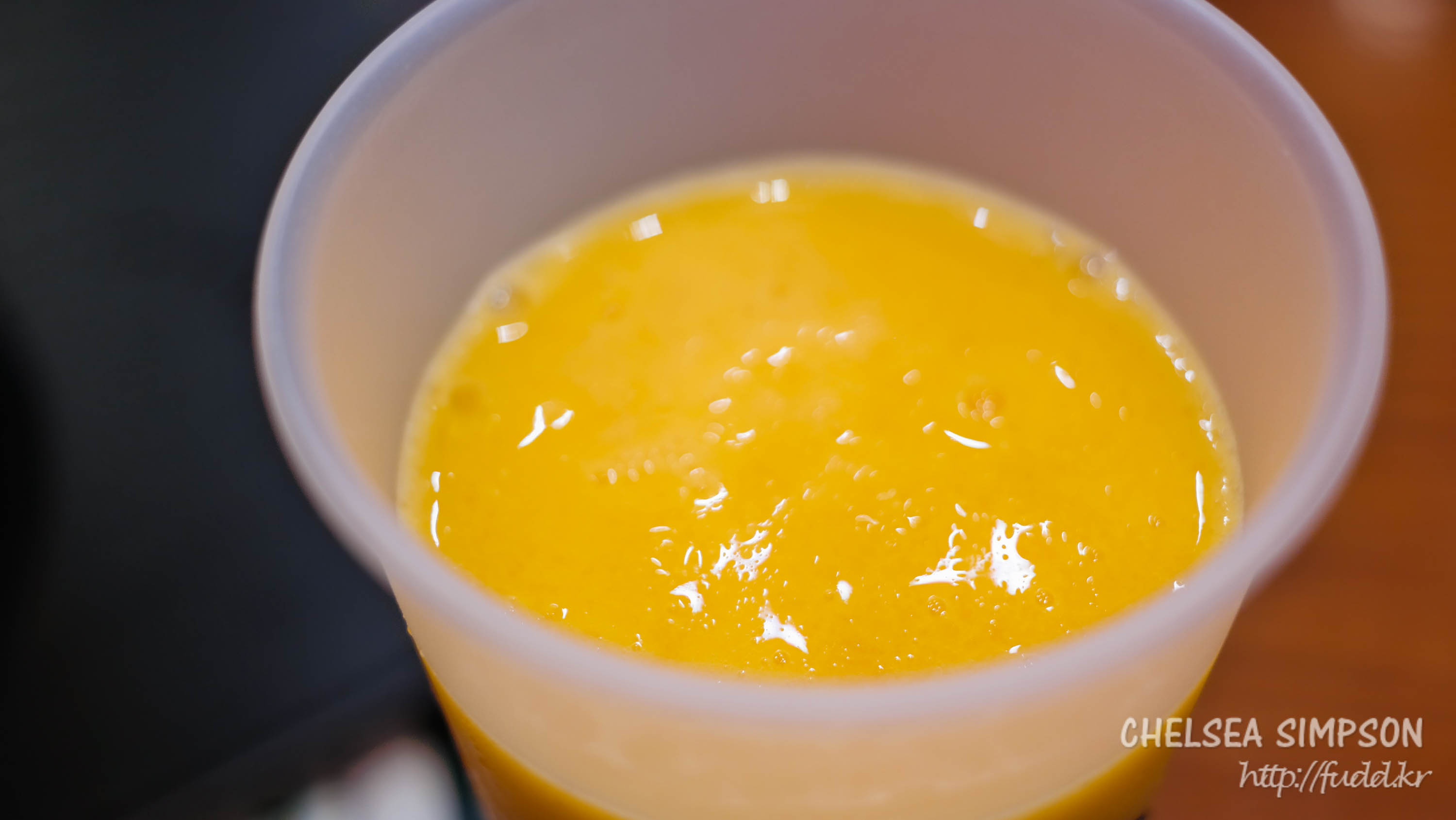 얼음 적게로 했기 때문에 농도는 약간 묽지만 술술 넘어가는 달큰상큼한 망고주스맛이 좋았다.