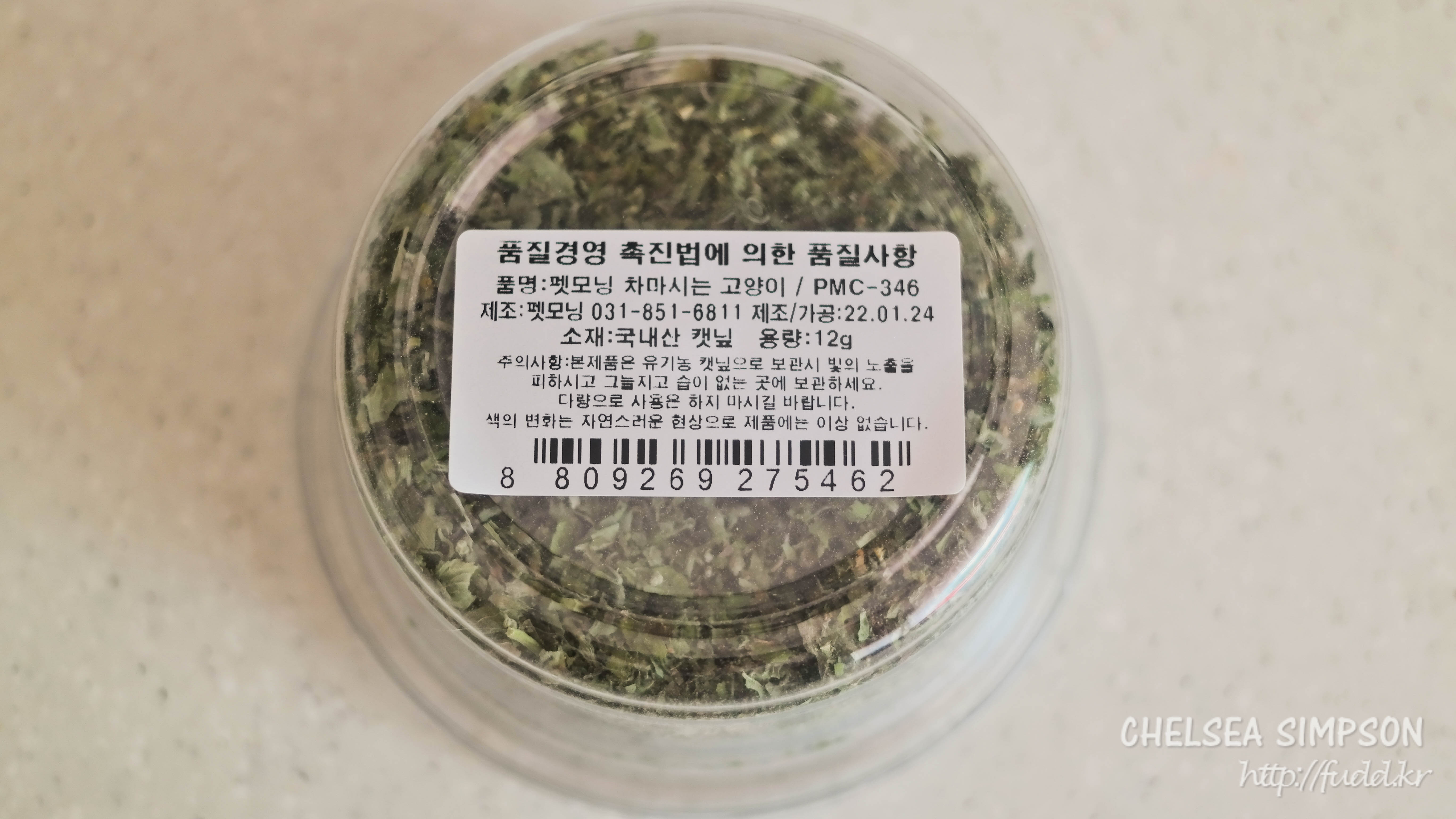 펫모닝 차마시는 고양이 유기농 캣닢(12g, 온라인 쇼핑몰 정가 5,000원)