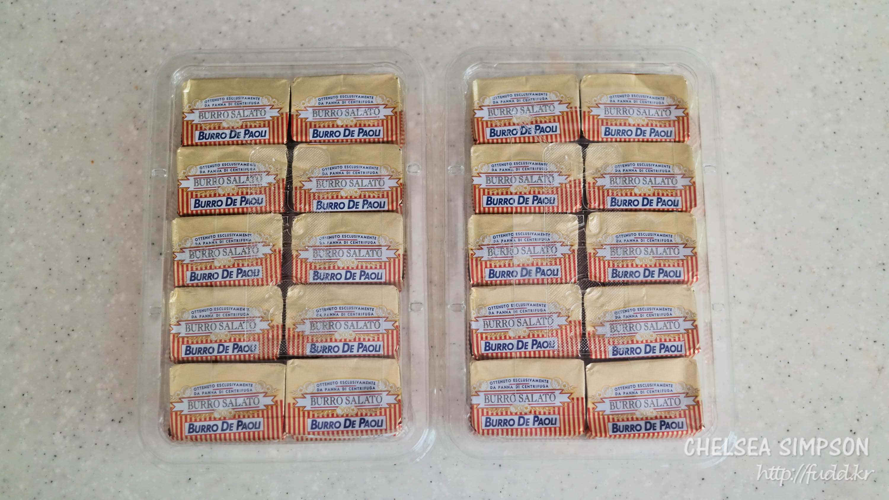 개당 12.5g씩 소분된 버터가 총 20개 들어있다.