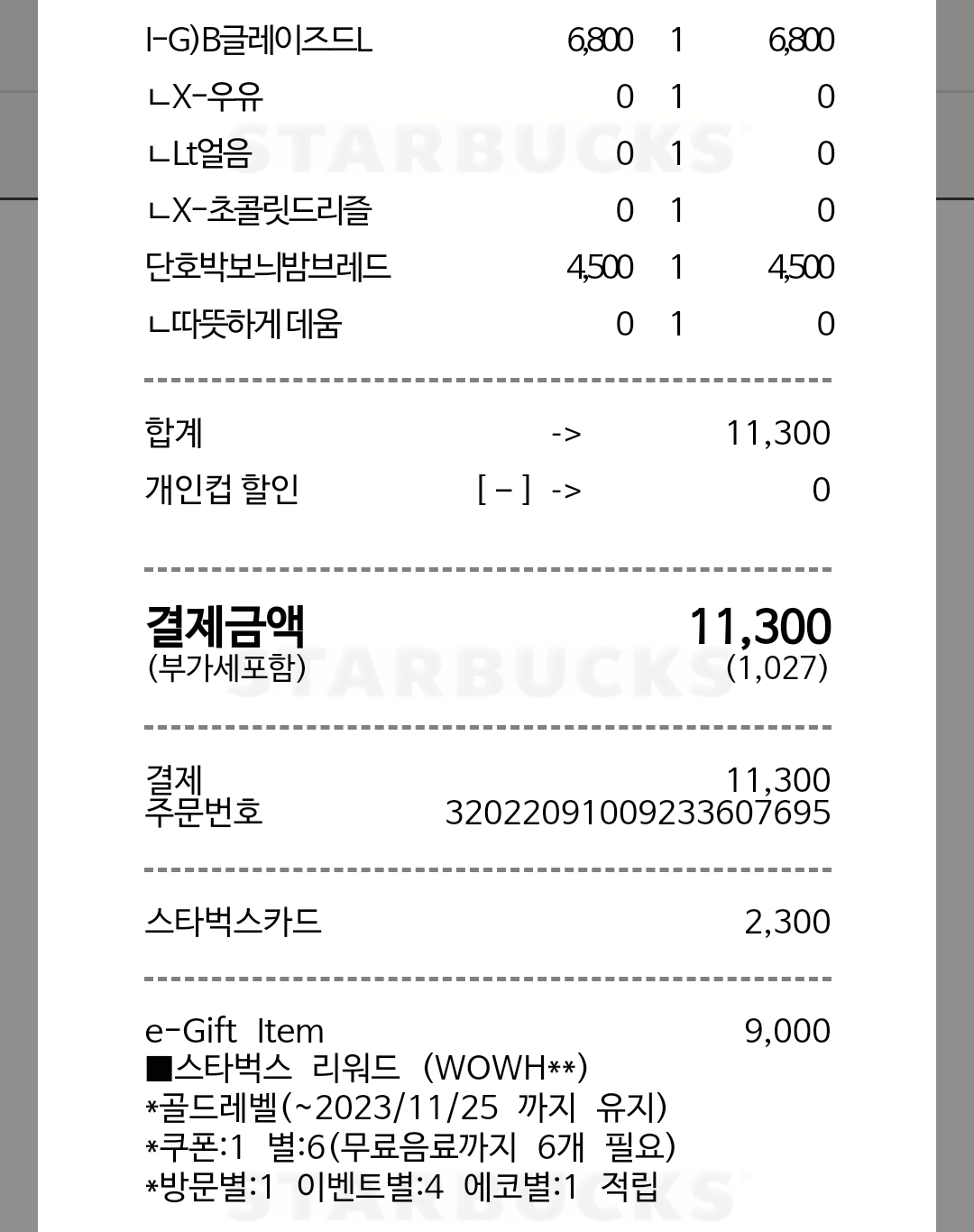 신메뉴를 사이렌 오더시 별 3개 추가 적립하는 이벤트가 적용되어서 별 적립이 많이 됐다.