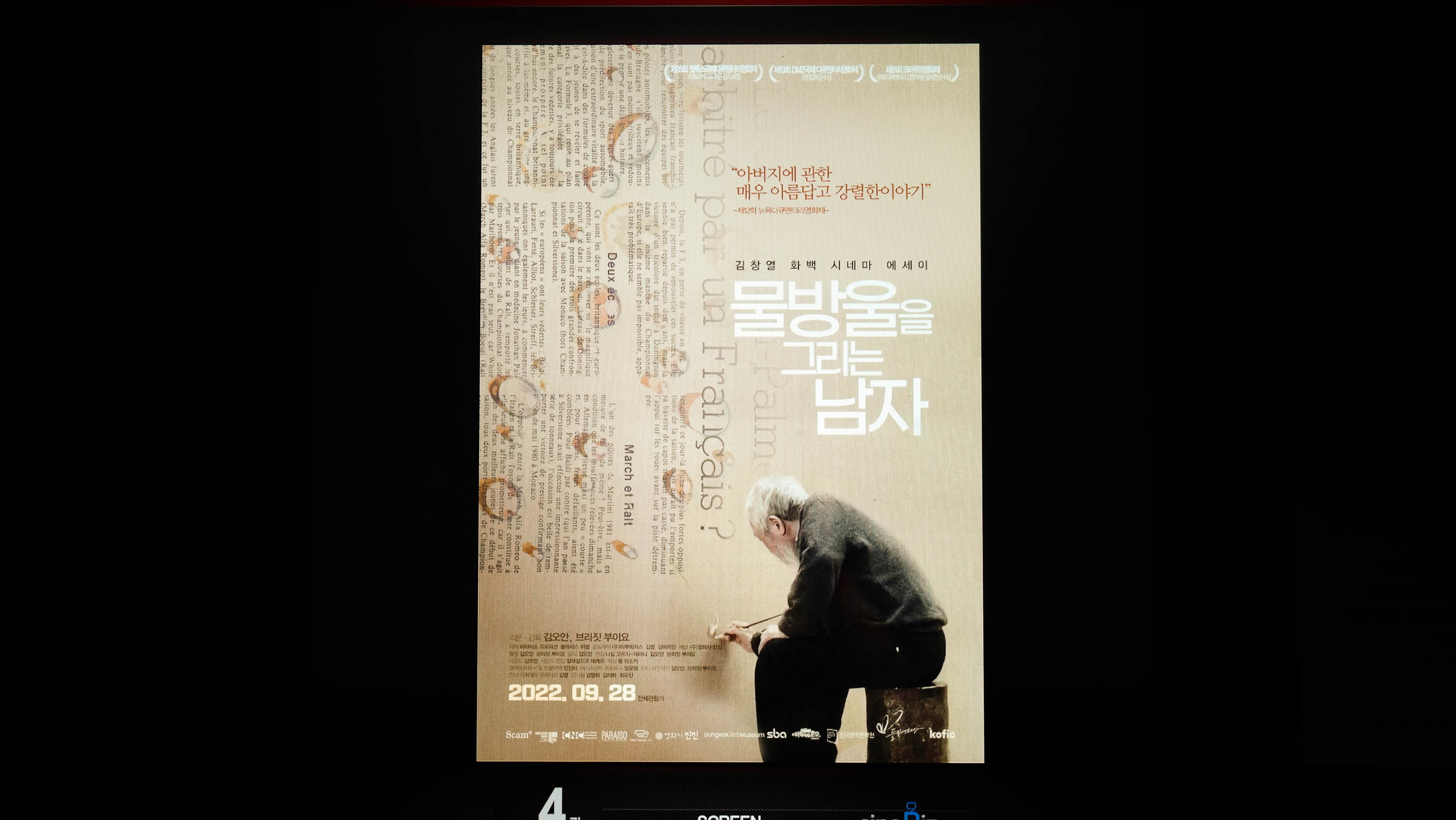 <물방울을 그리는 남자>의 나레이션과 인터뷰는 프랑스어로 이루어지기 때문에 화면에 한글 자막이 등장한다.