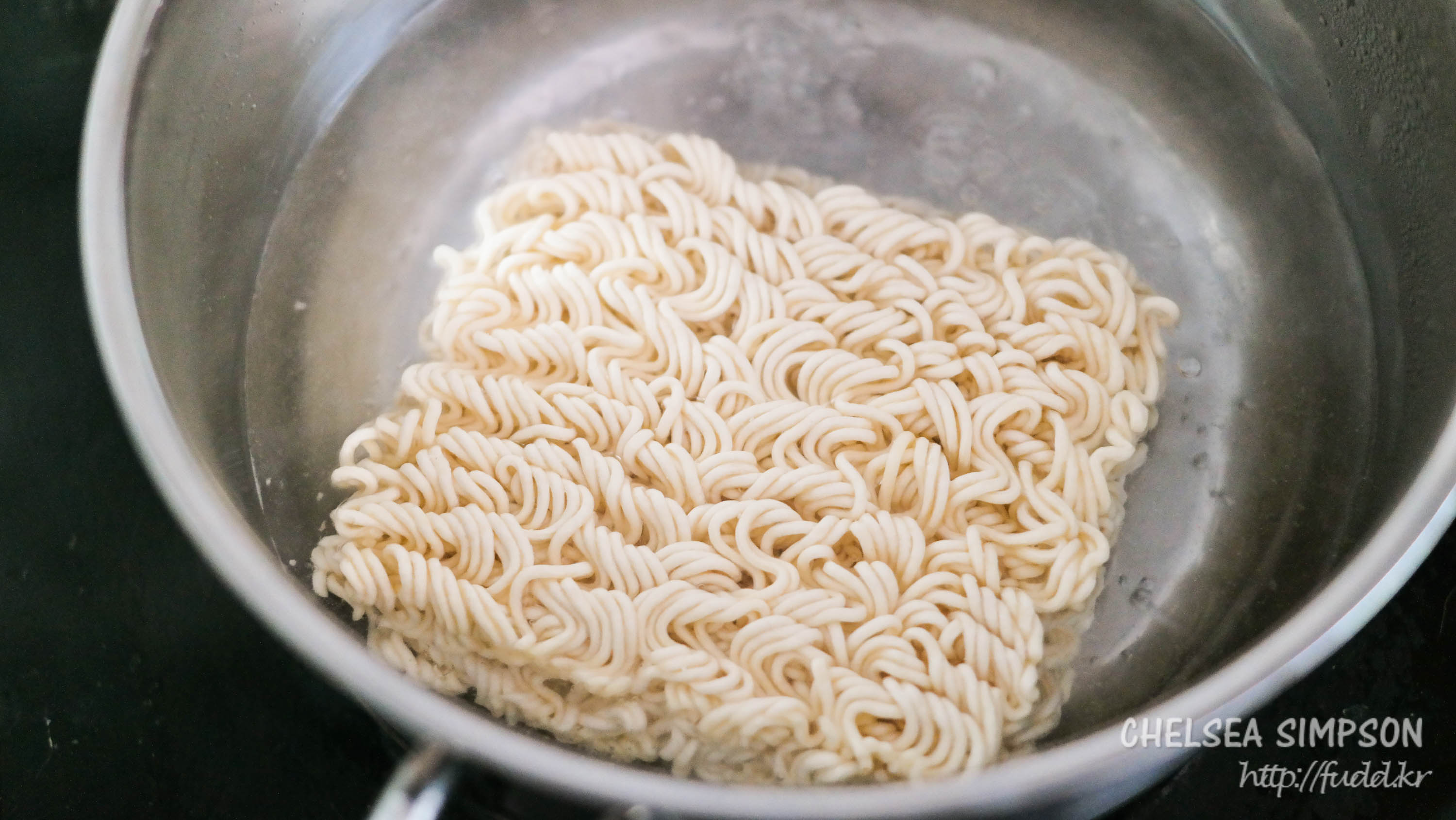 물을 500ml 끓여서 면을 넣고 3분간 조리한다.